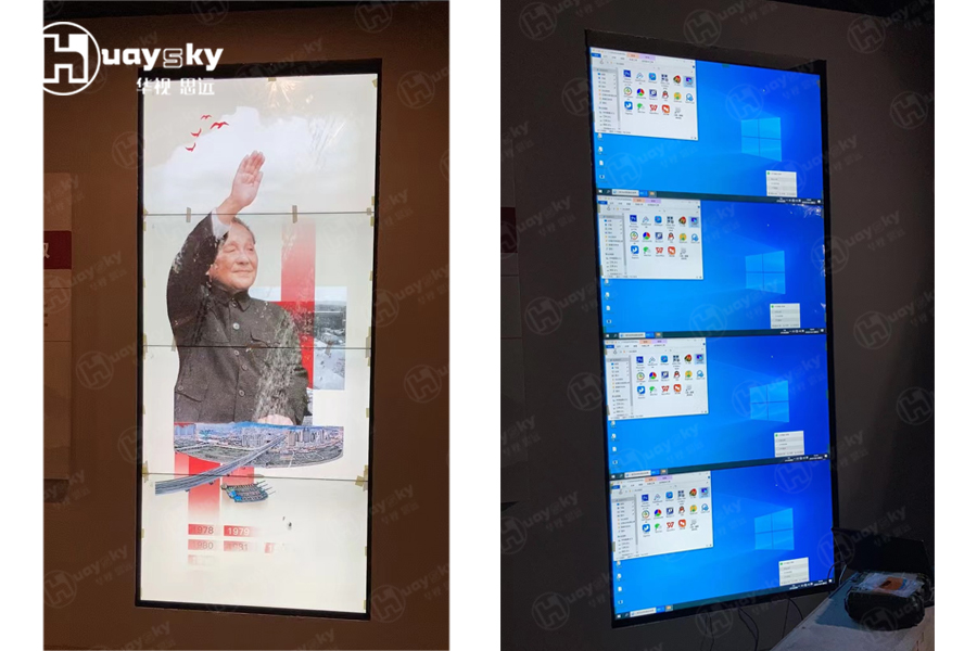55寸1.7mm超窄边拼接屏,配带触摸功能采用液压支架安装,组成一面大的互动魔墙,