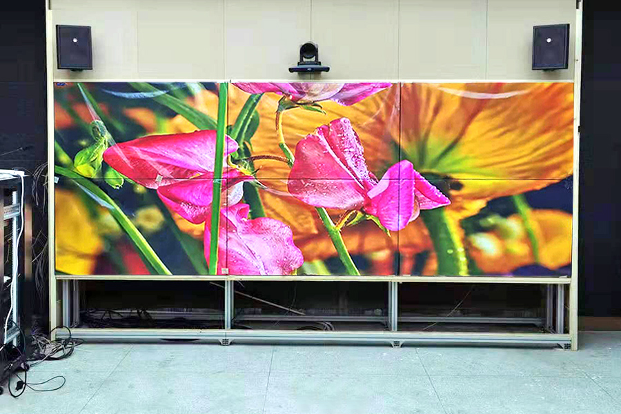 安徽医科大学[敏感词]附属医院采购的这套55寸液晶拼接屏采用LG原装工业级DID液晶屏55寸0.88mm,2*3超窄拼缝液晶拼接屏,落地支架式安装,整体简约、美观、大气。